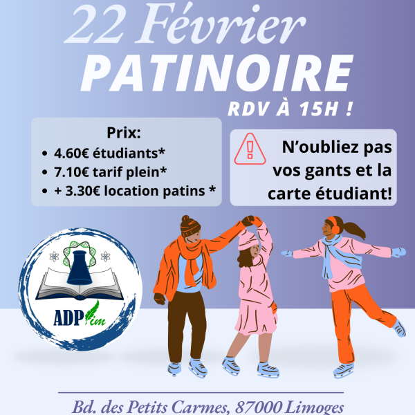 * Location patins: Limoges: 3,20€ / Extérieur : 3,30€
